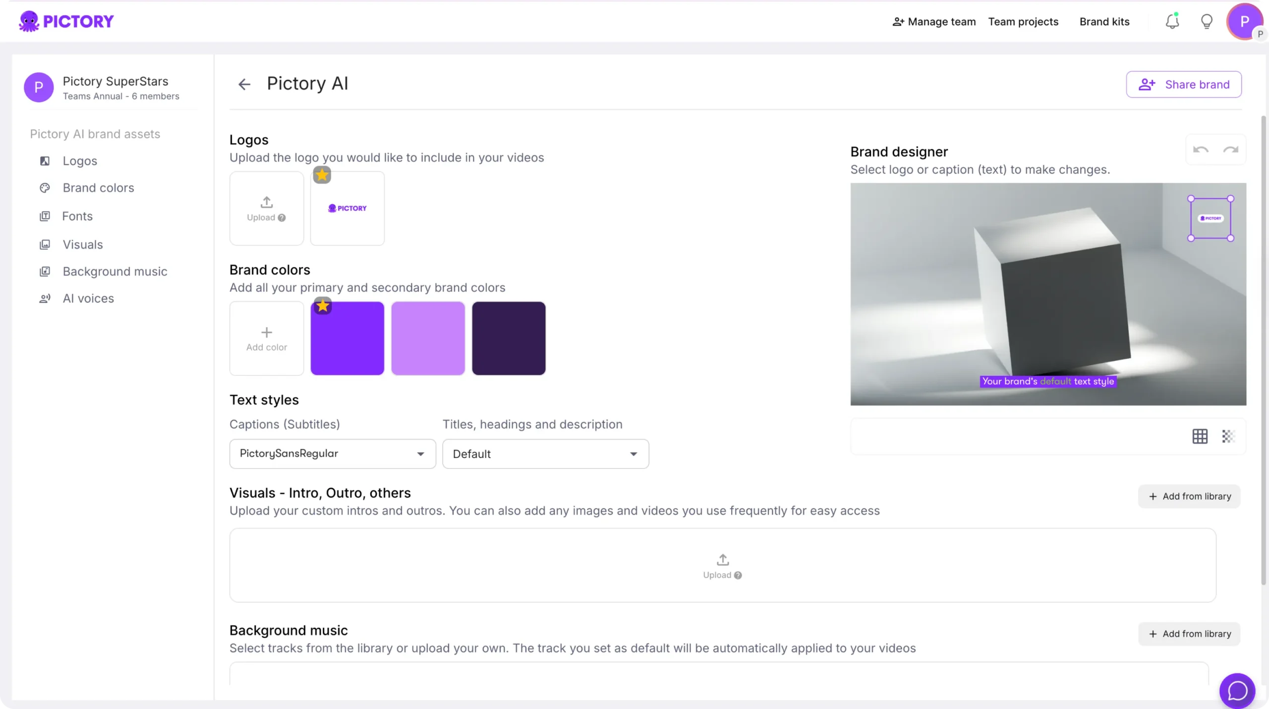 Pictory’s Brand Kits feature saves time and ensures your videos always look on-brand.