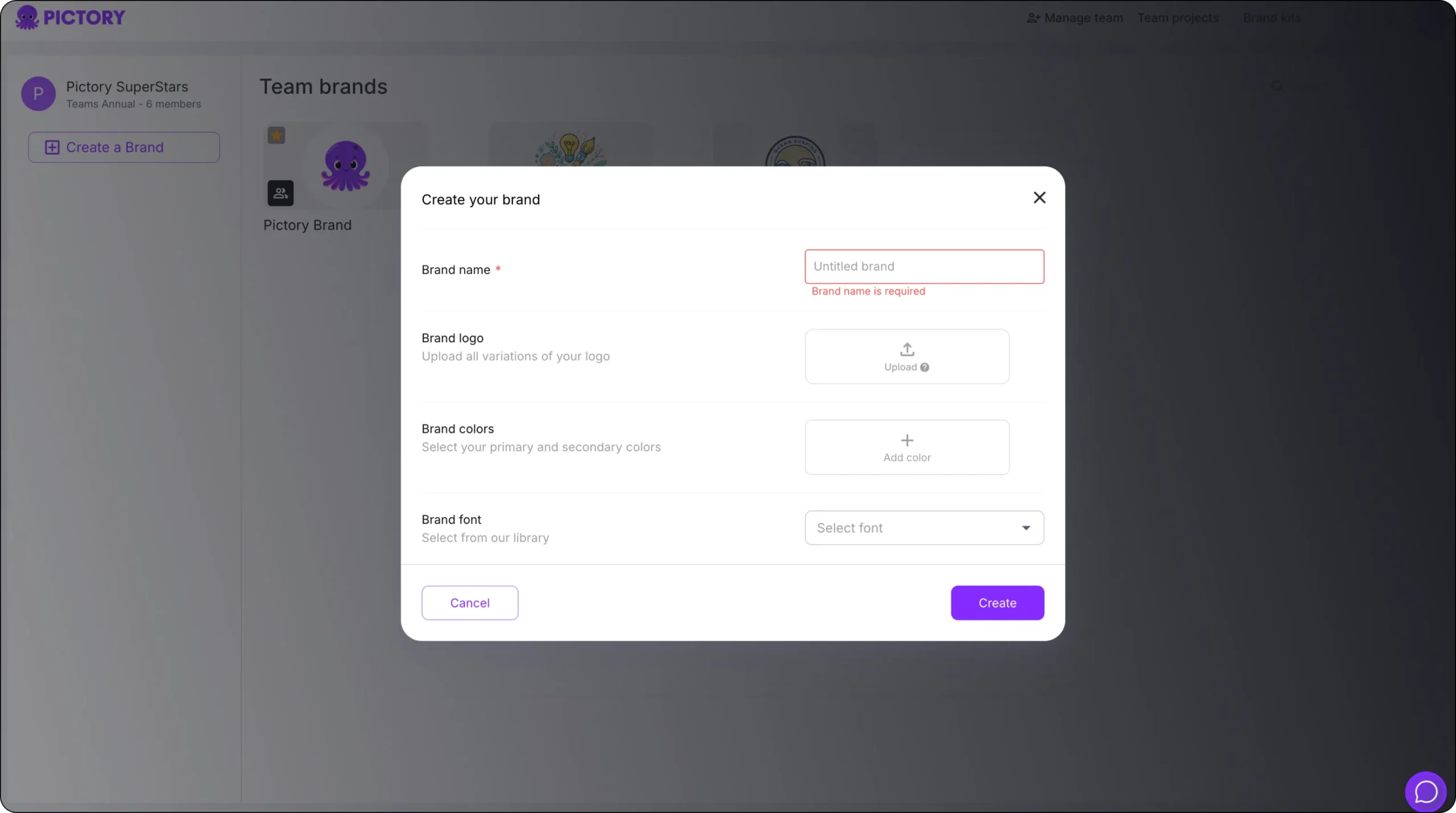 Once all elements are added, click Create to save your Brand Kit.