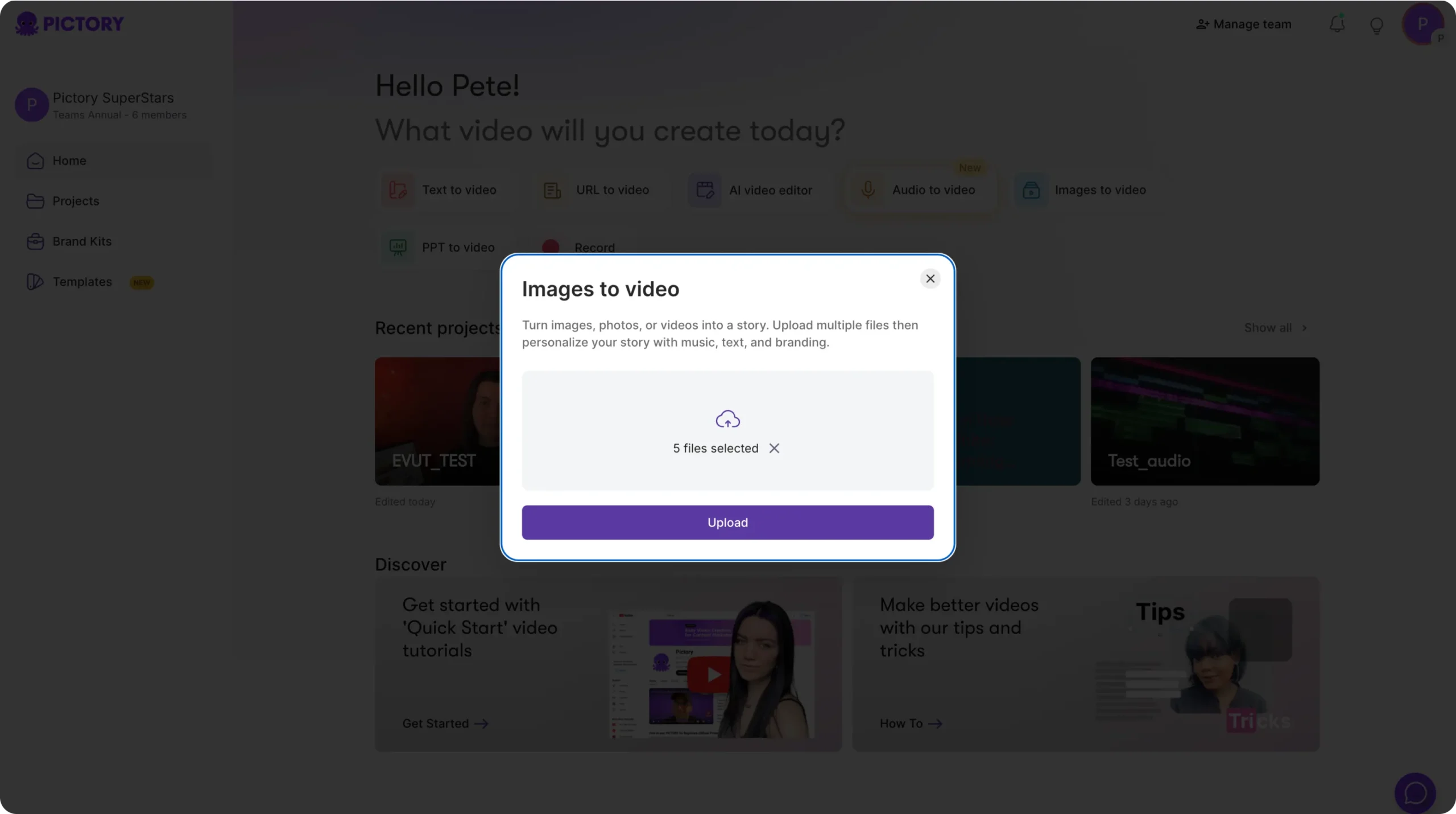 From your Pictory Home Page, select Images to Video.