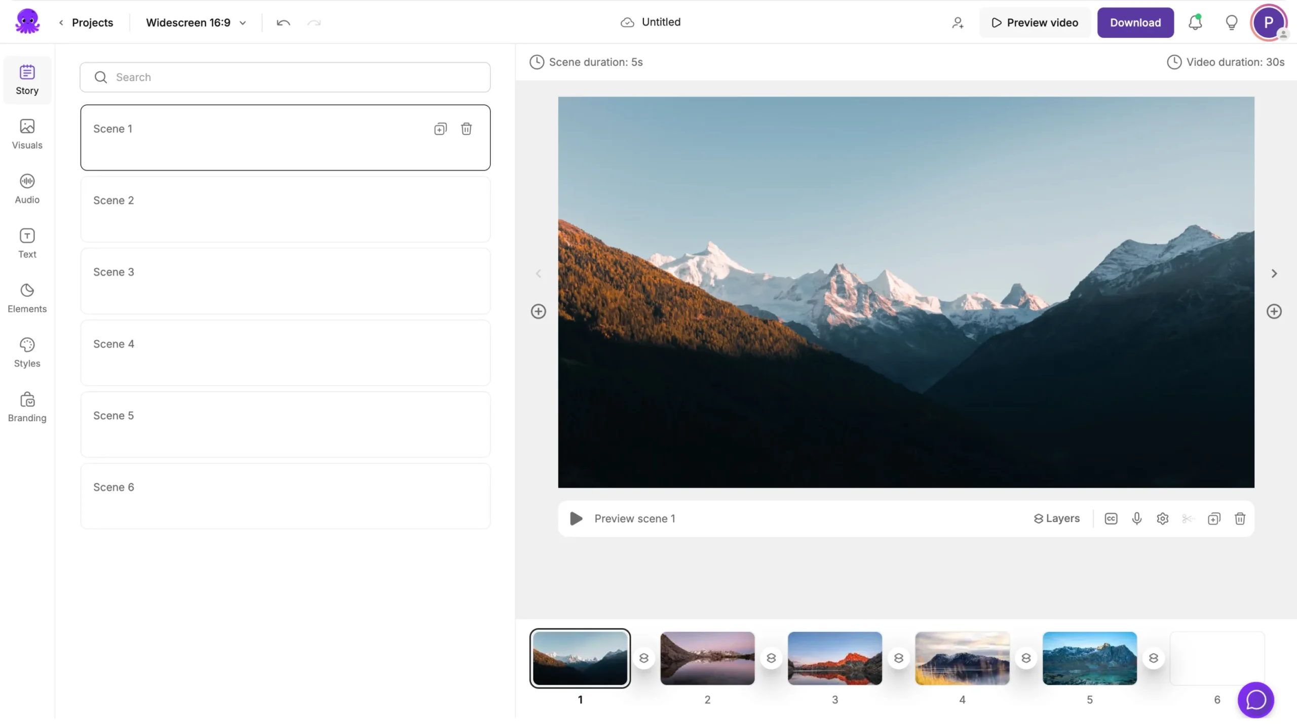 Default duration per scene (5 seconds)