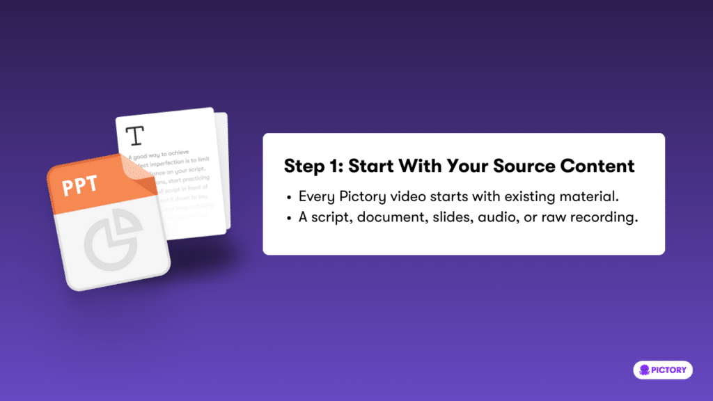 Every great training video starts with existing material. Pictory is designed to transform content you already have into structured video.