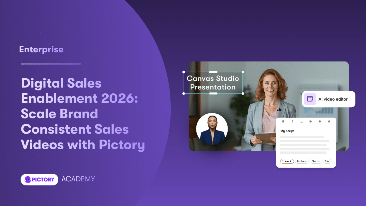 Pictory helps enterprise sales enablement teams turn existing content into professional video faster using AI workflows, brand kits, and an all-in-one AI video editor. Use this guide to build a repeatable, scalable workflow for sales enablement content, from script or URL through final review and distribution.