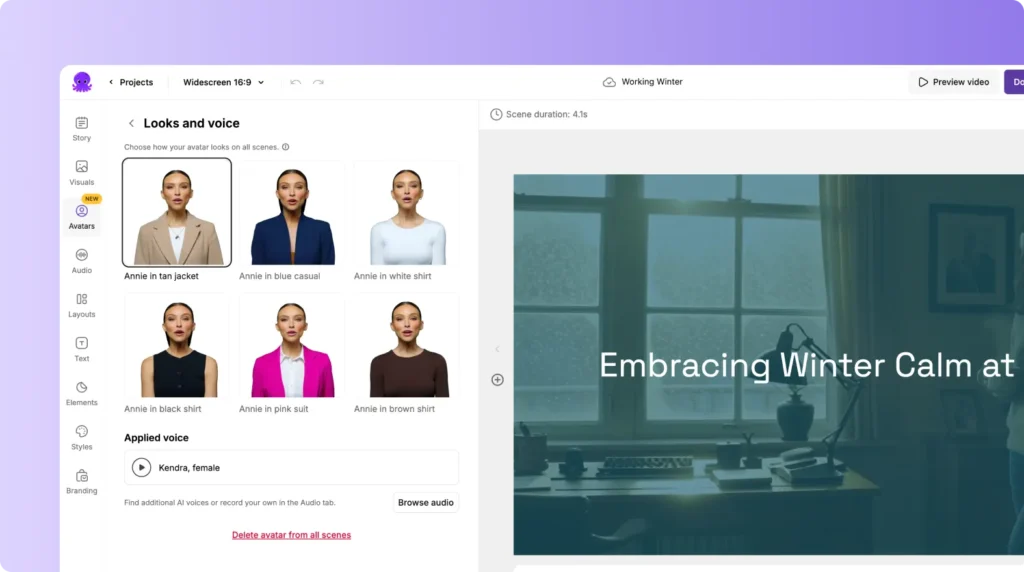 In Pictory, AI avatars are built directly into the video editor. They are not a separate tool or external workflow.