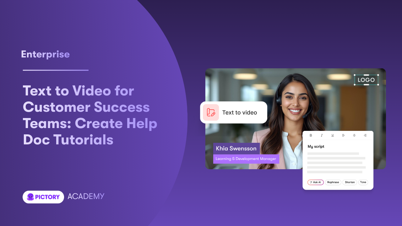 Customer Success teams are under pressure to reduce ticket volume, speed up onboarding, and keep knowledge up to date. With Pictory, you can convert text based help docs into polished, brand consistent video tutorials using an AI text to video workflow, then refine them in a powerful editor without adding production overhead.
