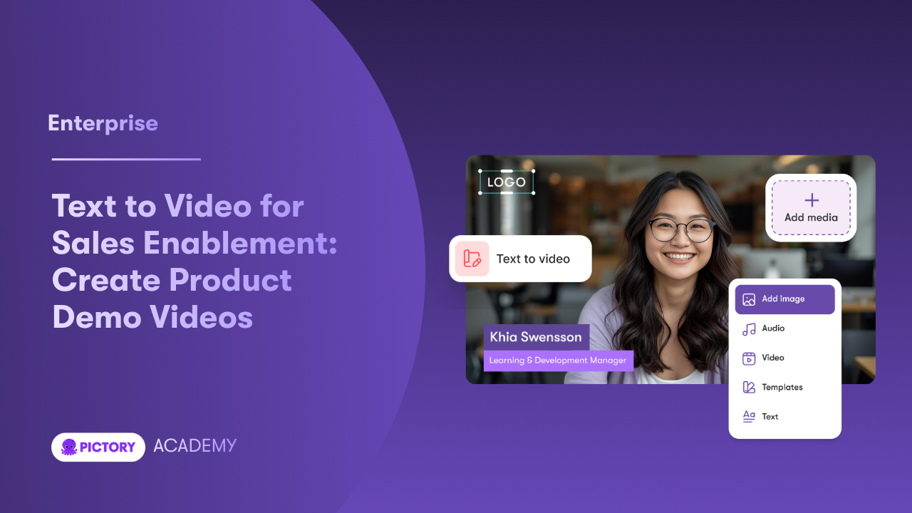 This guide shows how to use Pictory Text to Video inside AI Studio to create repeatable product demo videos for enterprise sales enablement.