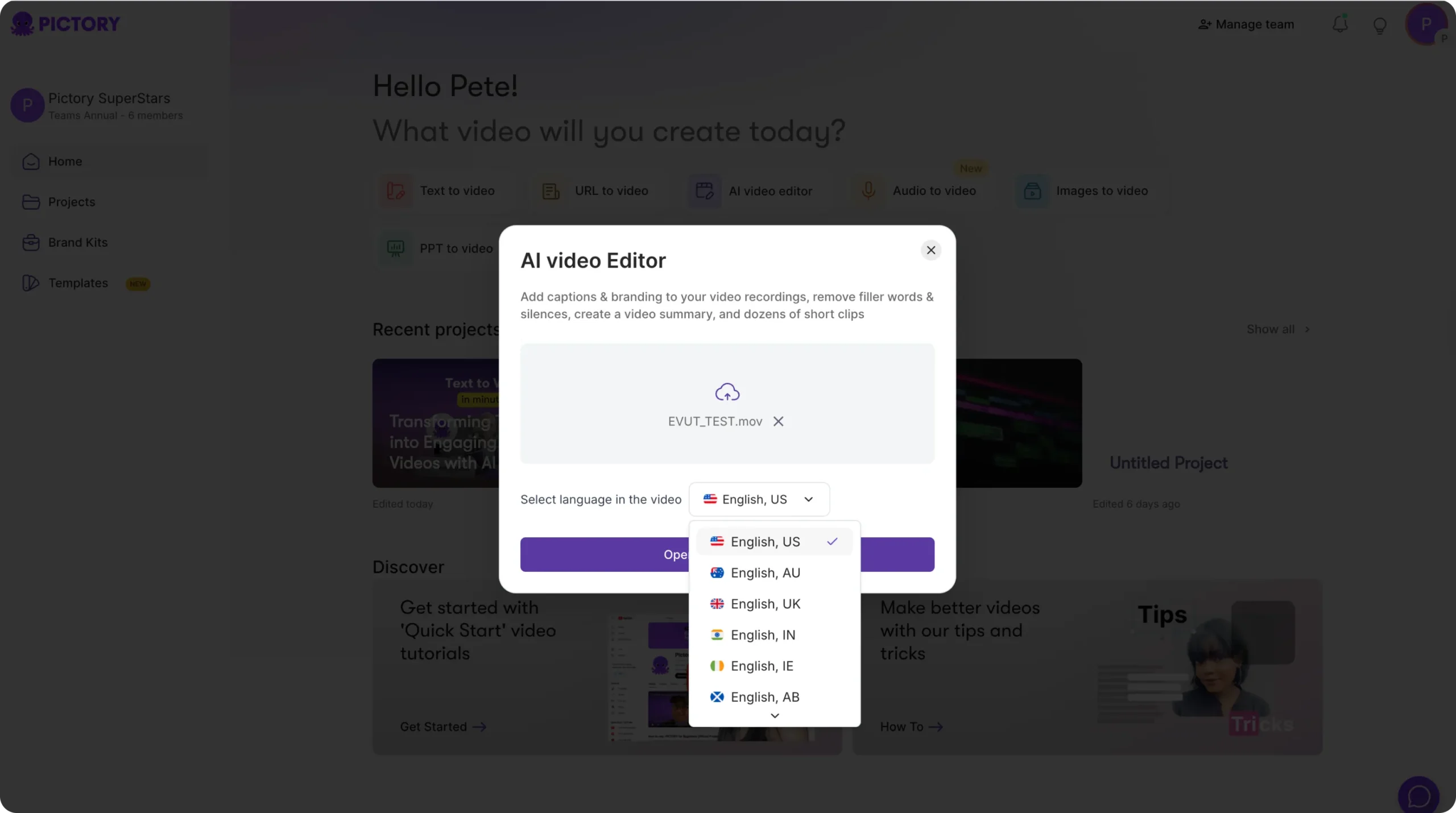 Start by uploading your media using the AI Video Editor or Audio to Video workflow. Pictory will: