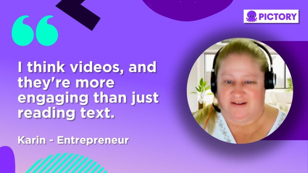 "It's a good way to use AI and generate informative or educational video."Key Results:200%Increase engagement70%Time saved per video.See what Pictory can do for youKarin works full time and